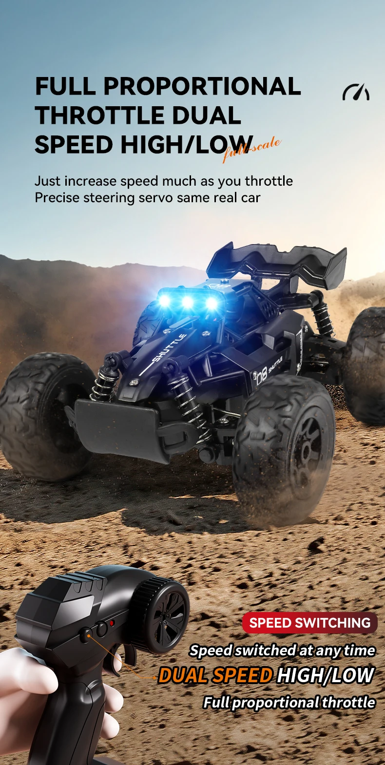 2.4G frequency supports multi player full proportional acceleration precise control Triggered throttle